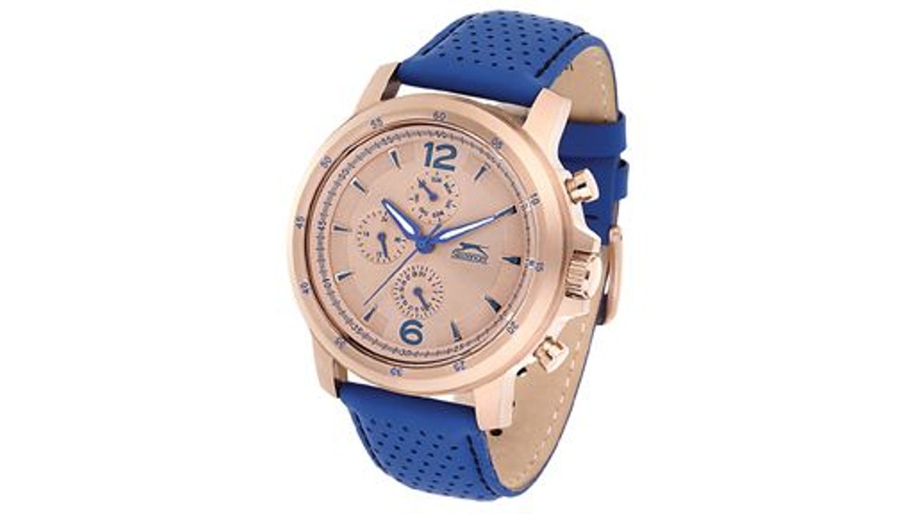 Bebek mavisi ve siyah kombininden oluşan Slazenger modeli spor giyinmeyi sevenlere yönelik. Takvim, gün ve am, pm özelliği bulunan saat, 5 ATM su geçirmez özelliğe de sahip.